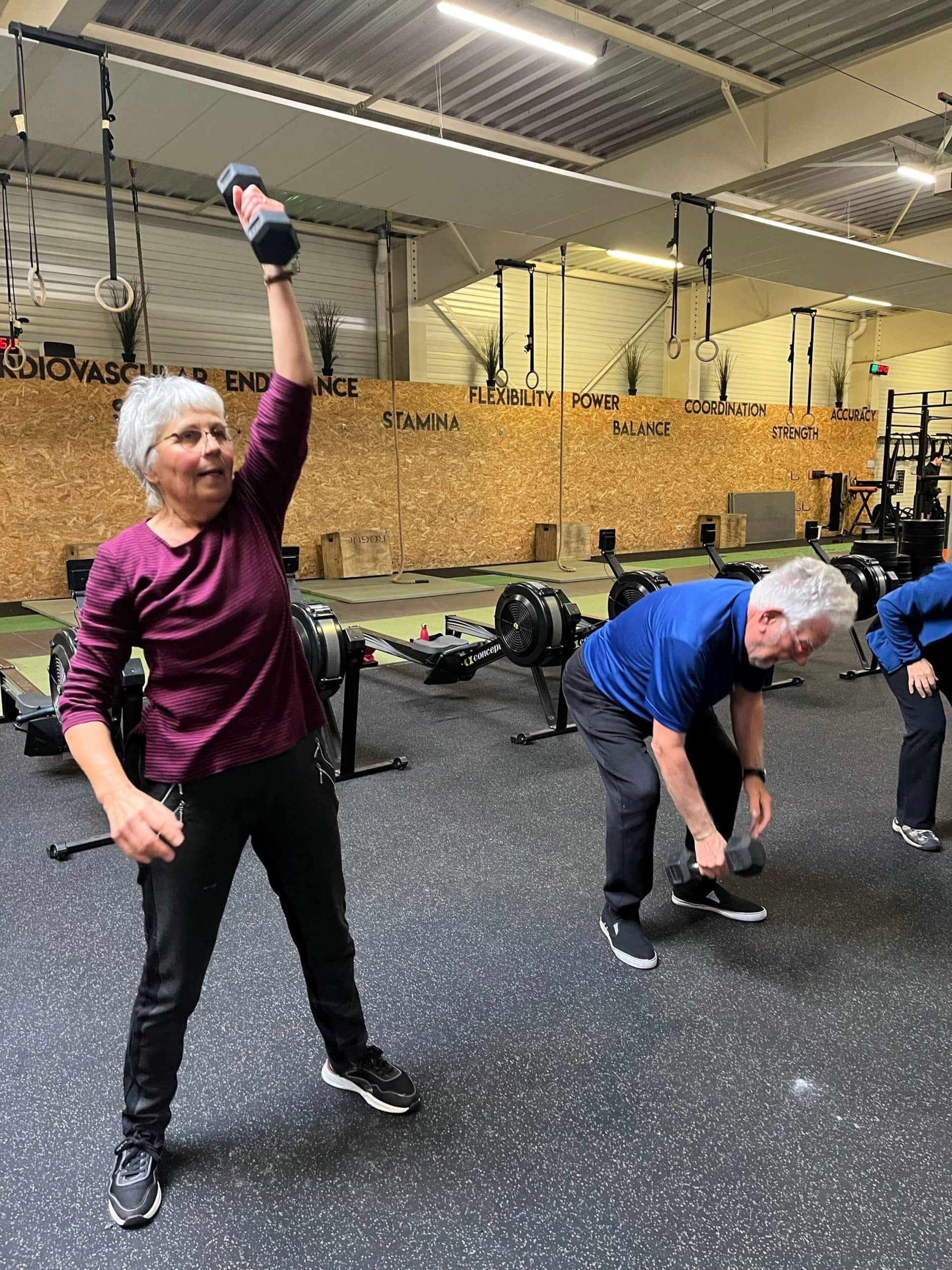 Séance de sport alliant exercices de mobilité, cardio et renforcement musculaire.Les charges sont faibles et chaque mouvement est adapté en fonction de tes capacités et de ta forme du jour.